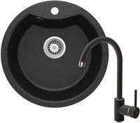Elegancki okrągły zlewozmywak granitowy Ø48cm z baterią grafit FIESTA SOLIS ZRSB2803