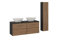 Zestaw meblowy 120cm z blatem, 2 umywalkami nablatowymi Pati i szafką wysoką Talia Casella – set-tc b black 120cm un pati hc